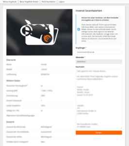 Über Ihre offenen Inserate können Sie die Detailansicht eines Motorrads einsehen. Dort sehen Sie alle verfügbaren Informationen zu diesem Motorrad wie Leistung, Zustand, Technische Daten und Kontaktinformationen des Verkäufers.